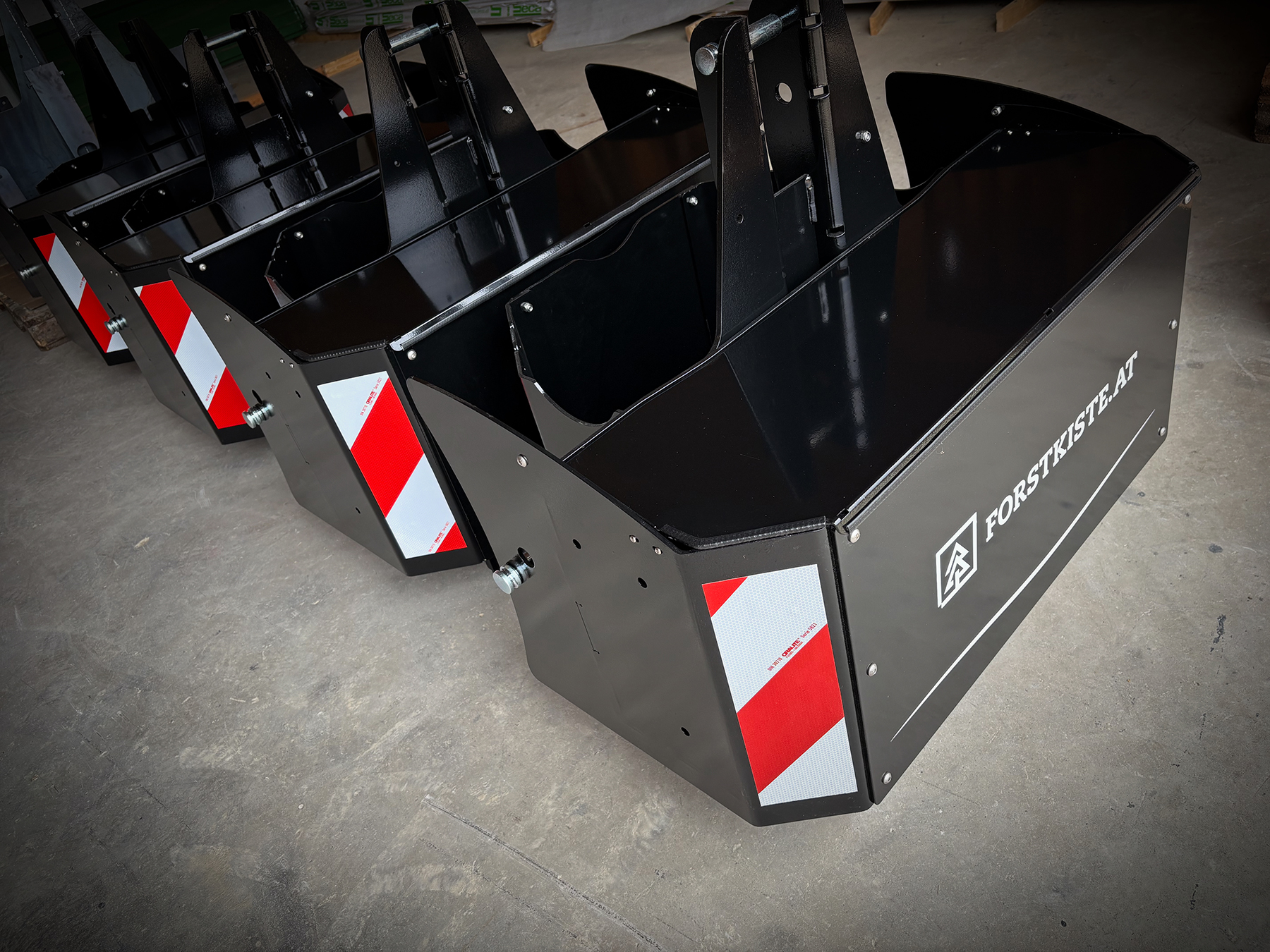 Die Forstkiste bietet ausreichend Platz, z.B. für 2 Motorsägen mit bis zu 50 cm Schwertlänge, zusätzliche Betriebsstoffe und Werkzeuge.